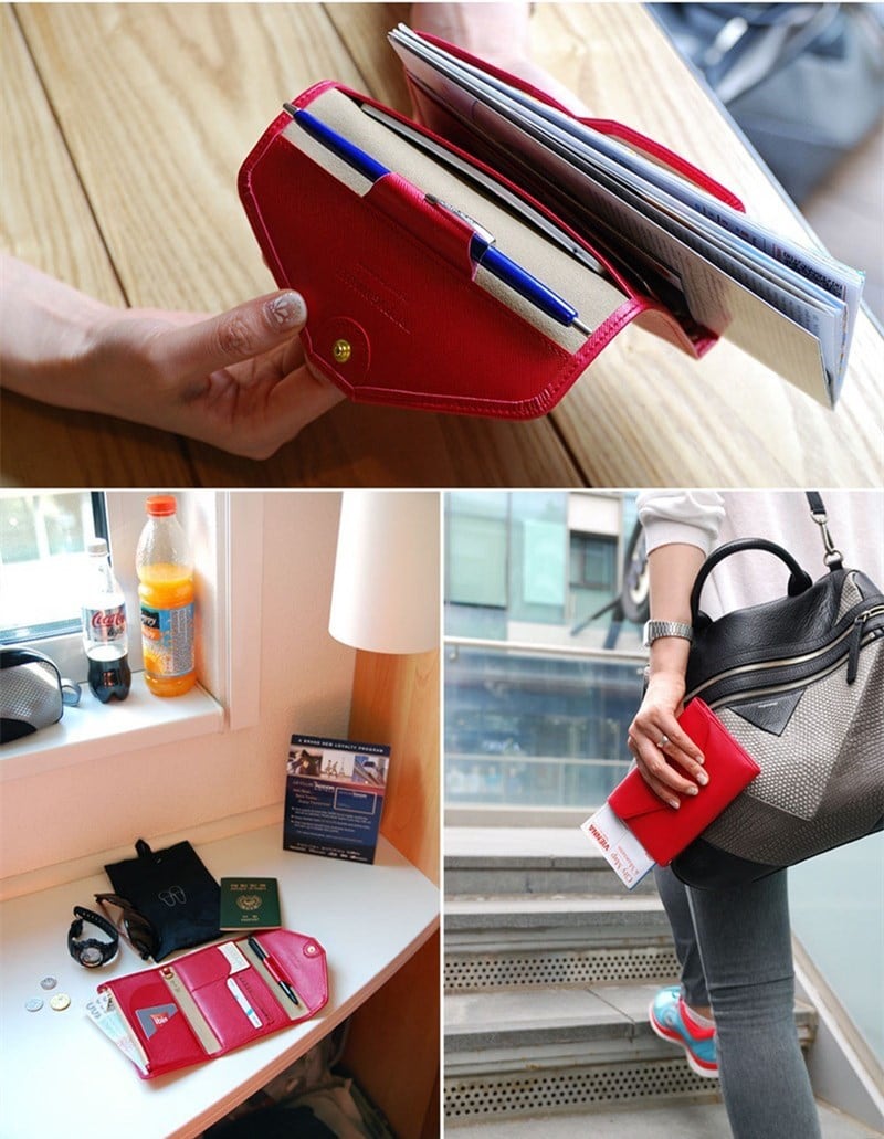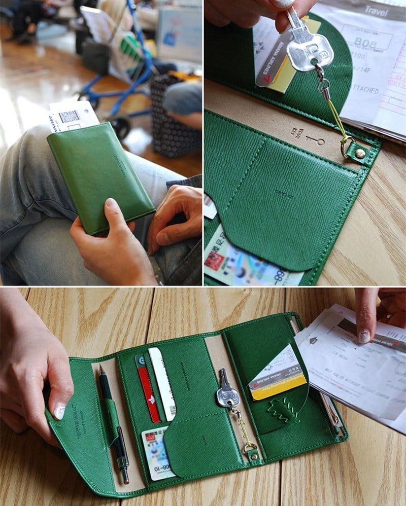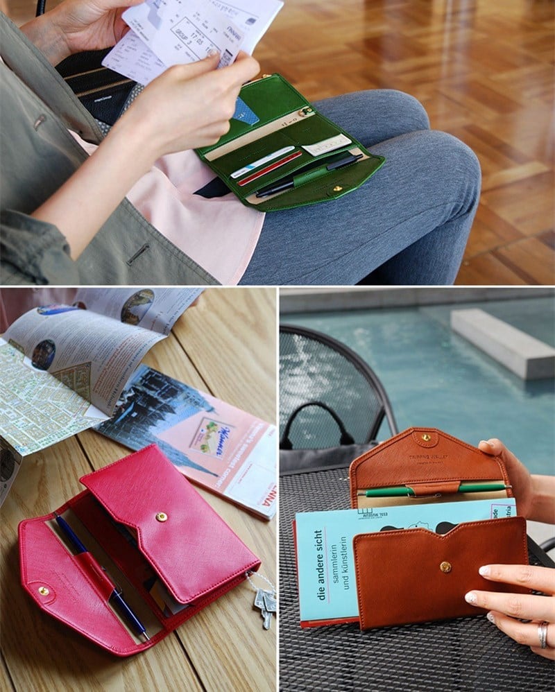 パスポートや航空券、カード類、小銭までまとめて管理できる使い勝手のいいパスポートケースです。